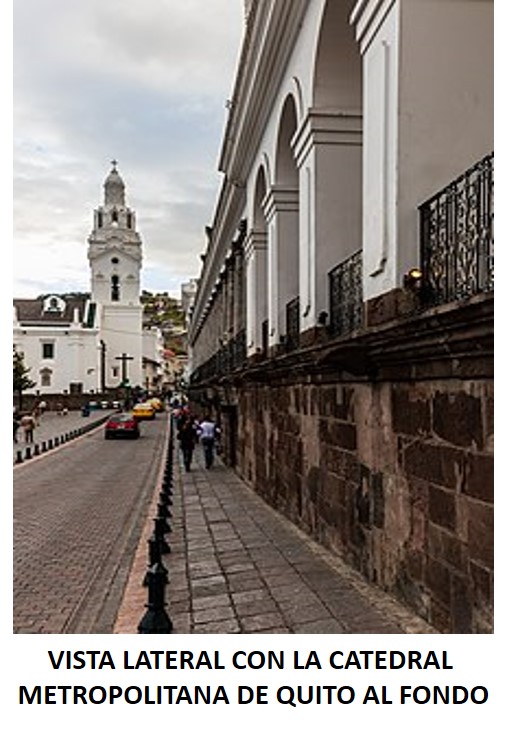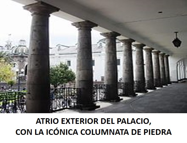 «Admirablemente situado, proporcionado al espacio y su contorno y de una sencilla dignidad: el PALACIO DE GOBIERNO ha dado a QUITO y al ECUADOR la imagen arquitectónica de la soberanía del Poder y del mando. Fue el de la Audiencia Real y bajo su pórtico solemne los oidores (de la REAL AUDIENCIA) escuchaban al pueblo. Es un palacio construido para escuchar, para hacerse oír; abierto, de dos grandes puertas, con patios y corredores y amplísima azotea, entre lo HELÉNICO y ANDALUZ, más tiene de casa y de convento que de castillo o palacio, aunque su título fue el de PALACIO REAL. Los infraescritos diputados del pueblo, que firman el Acta del 10 de AGOSTO de 1809 lo dicen: dado y firmado en el PALACIO REAL DE QUITO.»