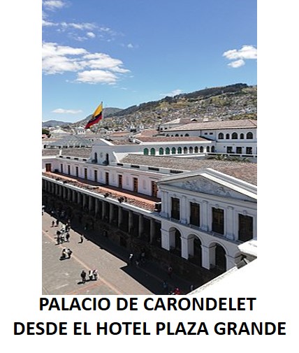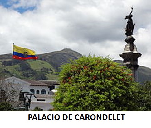 El PALACIO DE CARONDELET es la sede del Gobierno y residencia oficial del Sr. Presidente de la República del ECUADOR. Está ubicado en el centro histórico de la ciudad de QUITO. Es uno de los principales símbolos del Estado ecuatoriano y el eje neurálgico del espacio público conocido como PLAZA DE LA INDEPENDENCIA o PLAZA GRANDE (nombre virreinal), alrededor de la cual se levantan además el PALACIO ARZOBISPAL, el PALACIO MUNICIPAL, el PALACIO DE PIZARRO, la CASA DE LOS ALCALDES, el PALACIO DE LA CURIA y la CATEDRAL METROPOLITANA. Fue conocido durante el virreinato Español como PALACIO REAL DE QUITO, pues era la sede de la REAL AUDIENCIA y de la GOBERNACIÓN CIVIL Y MILITAR de la Región.